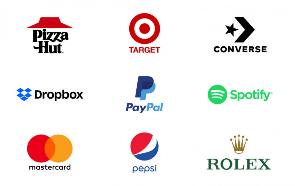 組合商標(biāo)標(biāo)識(shí)的示例包括:必勝客、塔吉特、匡威、Dropbox、貝寶、Spotify、萬事達(dá)卡、百事可樂、勞力士。