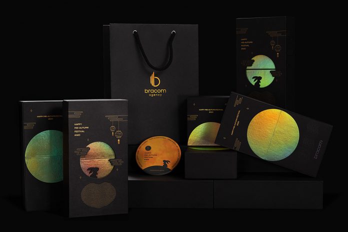 為了慶祝這一流行事件,創(chuàng)造了一個(gè)漂亮的中秋節(jié)禮品盒。“中秋節(jié)禮品盒設(shè)計(jì)月餅以令人陶醉的月球形象為特色,月餅盒設(shè)計(jì)被認(rèn)為是寶貴的禮物,以表達(dá)我們對(duì)朋友和客戶的富有成效合作的贊賞。秋月在寧?kù)o的湖面上升起的視覺(jué)效果使我們想起了將忙碌的生活拋在一邊,享受當(dāng)下自然的魅力。